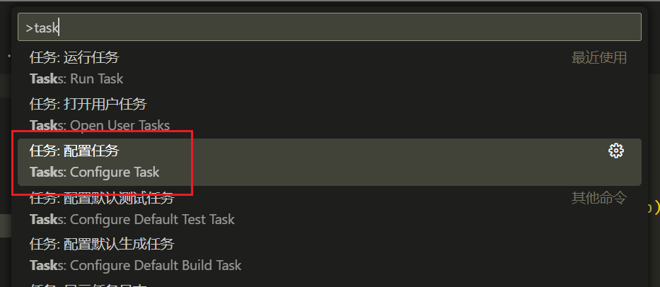 打开配置面板,输入 task,选择