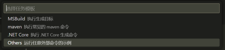 之后选择 tasks 的模板,这里直接选择 “Others 运行任意外部命令的示例”