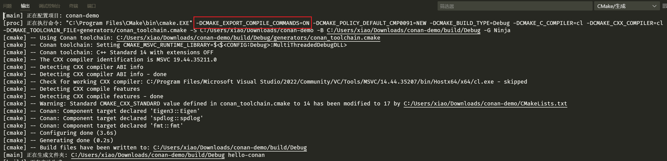 conanfile.py 中添加😎),让 cmake 自动导出