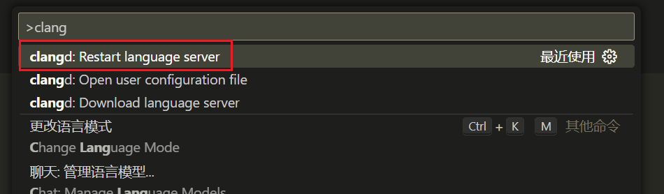 填写好相关配置后,可以重启 clangd(同样在命令面板中进行操作)