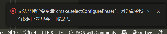 ${command:cmake.configure}会执行插件提供的命令,并使用命令输出进行字符串替换,中间可能会报错,因为我们的目标是在 tasks 中执行 VS Code 的一些命令(有点邪道?),具体可以参考 VS Code 对变量替换的说明文档![]()