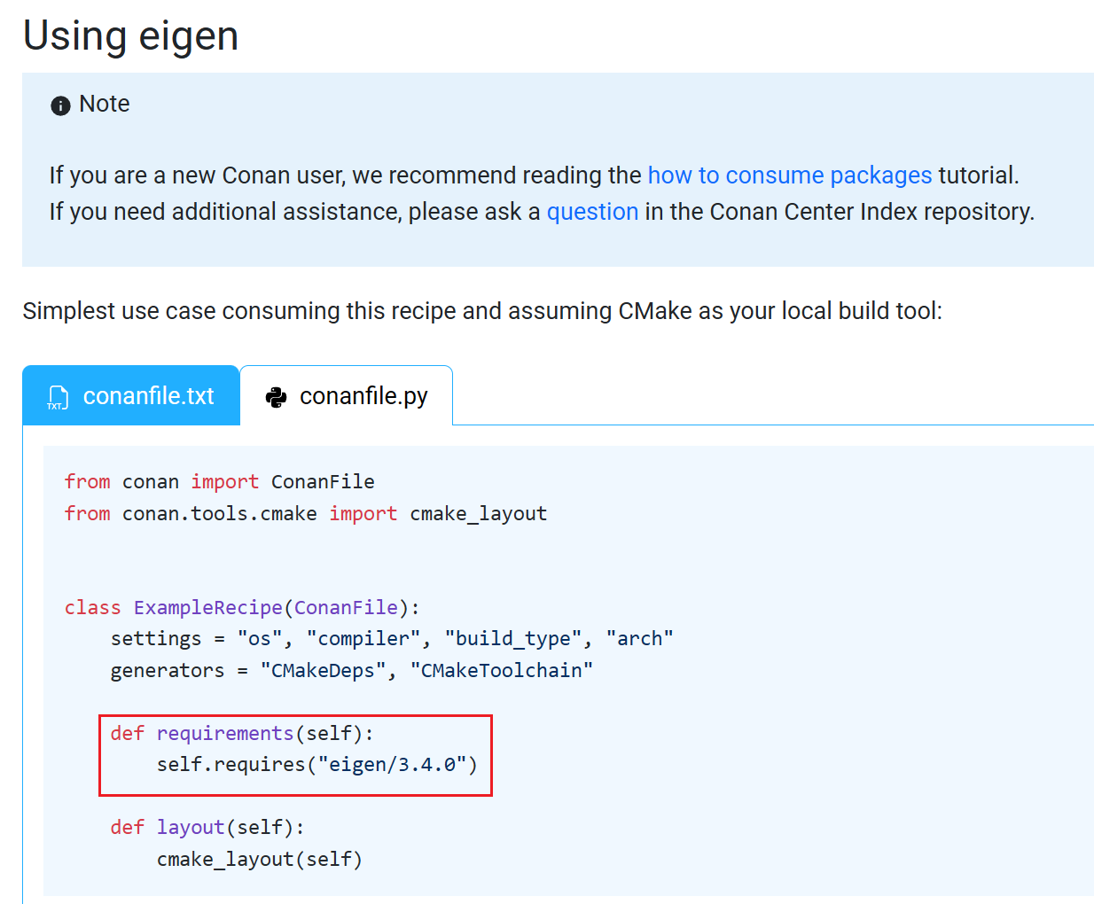 只需要修改 conanfile.py,创建 requirements