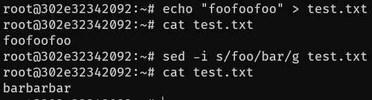 1 sed -i s/foo/bar/g test.txt