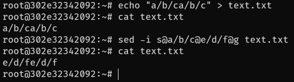 1 sed -i s@a/f/g@e/f/g@g test.txt