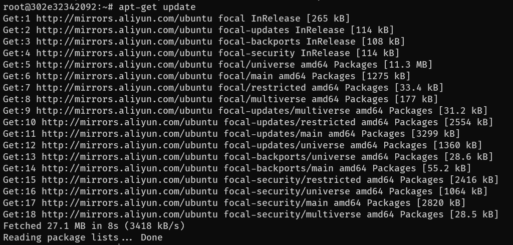 1 2 sed -i s/archive.ubuntu.com/mirrors.aliyun.com/g /etc/apt/sources.list && \ sed -i s/security.ubuntu.com/mirrors.aliyun.com/g /etc/apt/sources.list