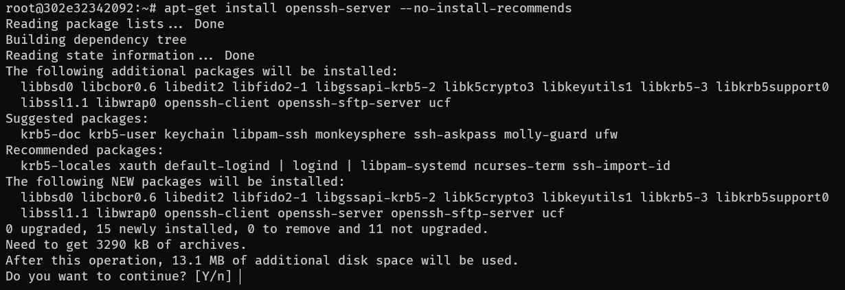 1 apt-get install openssh-server --no-install-recommends -y