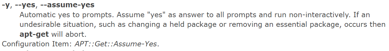 -y 来进行默认安装(具体可以参考 apt-get 的 man 页面 )
