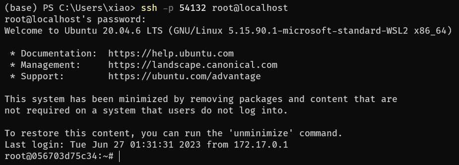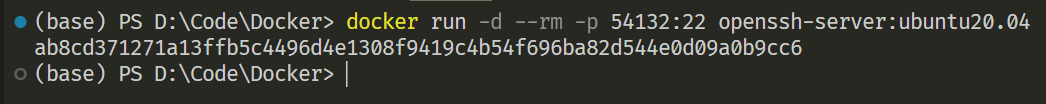 1 docker run -d --rm -p 54132:22 openssh-server:ubuntu20.04