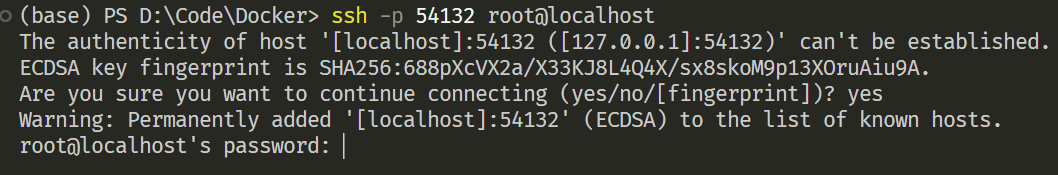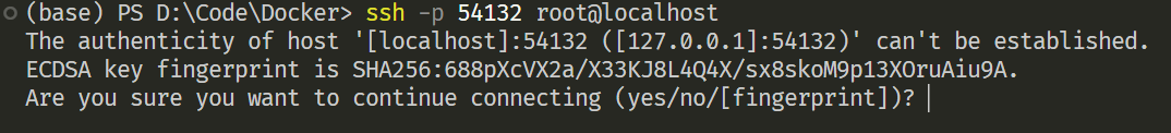 表示将宿主机的54132端口绑定到容器的22端口(即SSH端口上,这样我们就可以通过