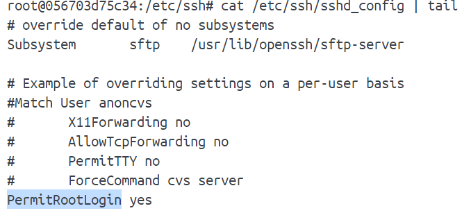 1 echo "PermitRootLogin yes" >> /etc/ssh/sshd_config