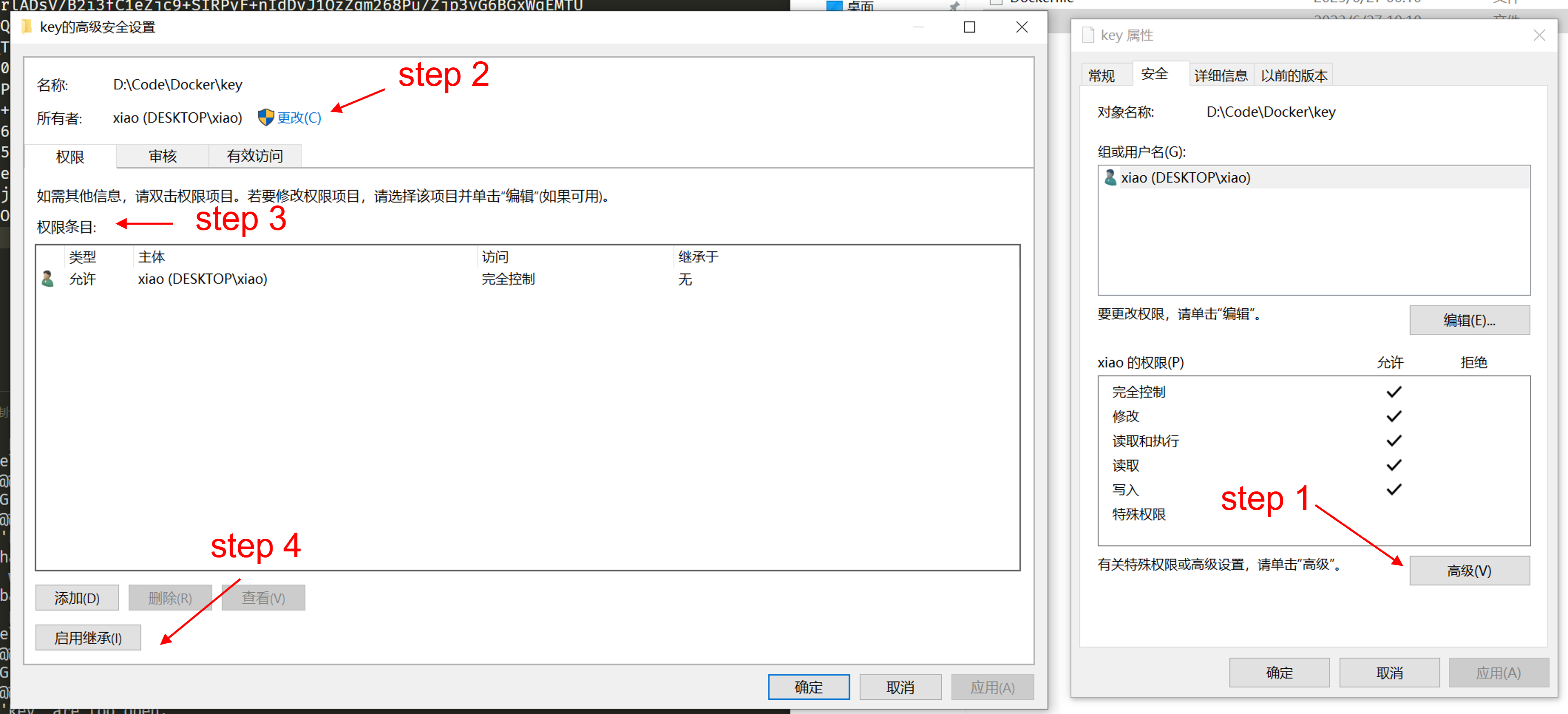 提示我们权限不对,需要调整 key