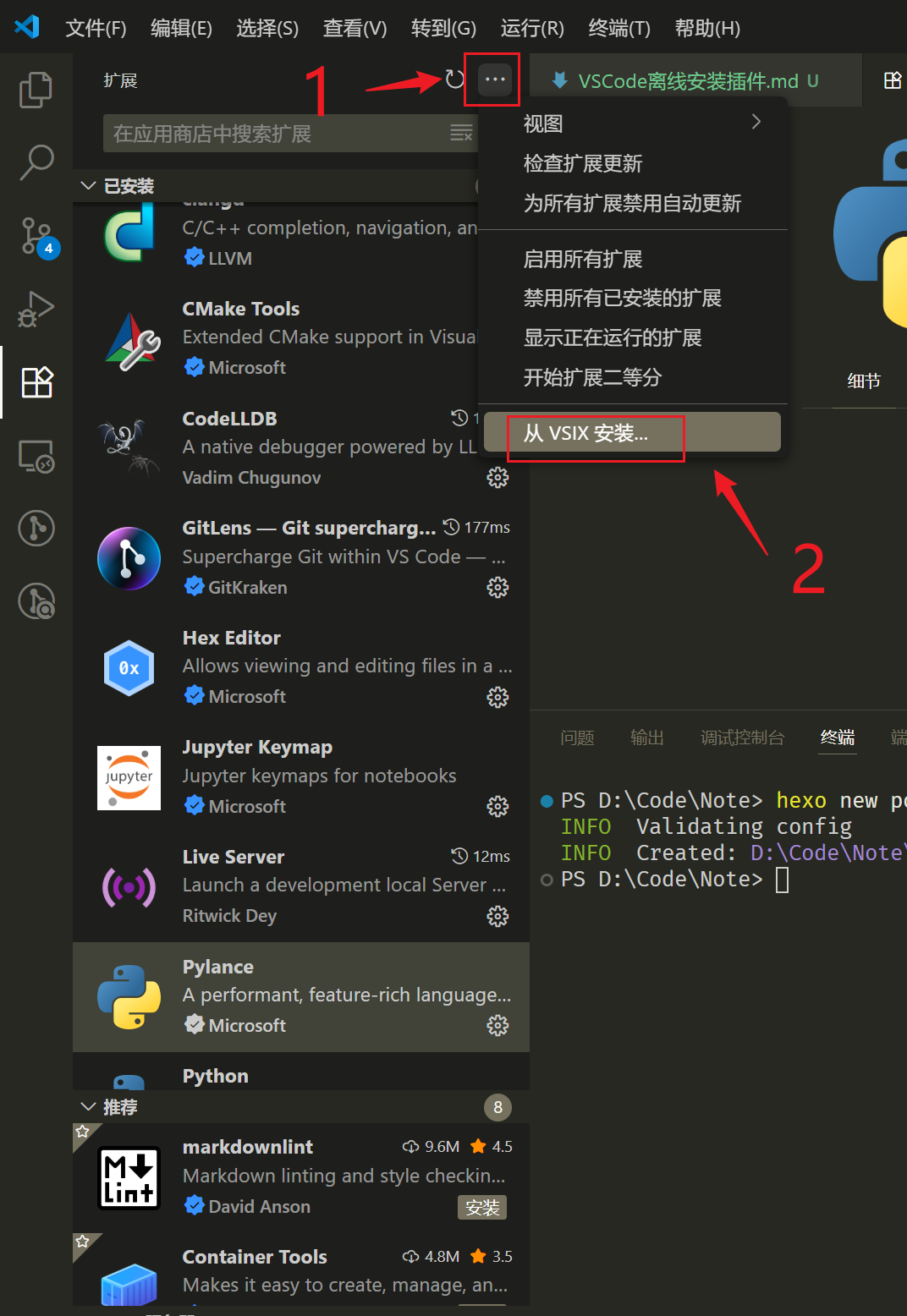 ...,在弹出的菜单栏中选择 “从 VSIX 安装...”