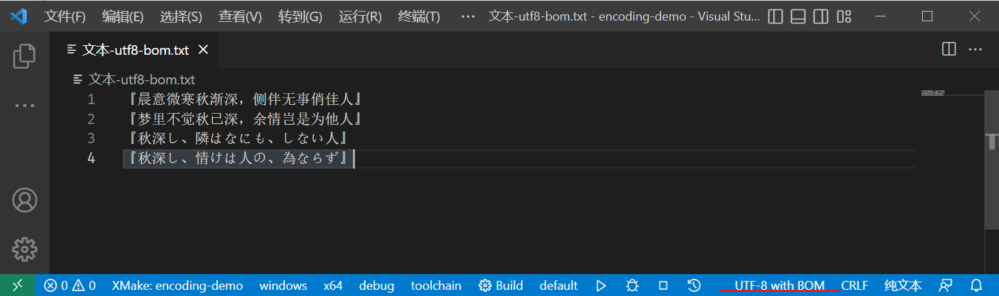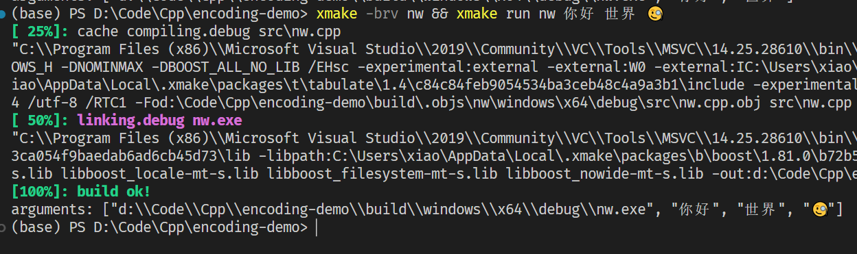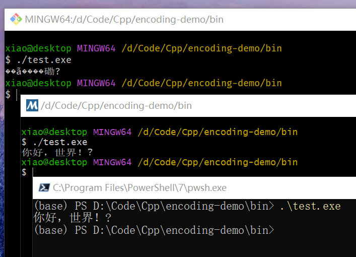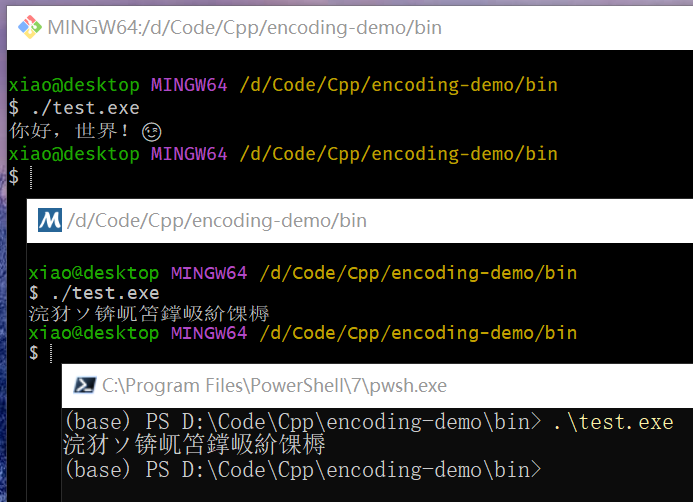 1 | (base) PS D:\Code\Cpp\encoding-demo\bin> .\test.exe |