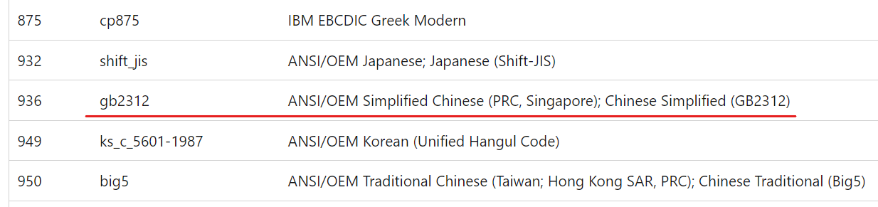 在微软 win32 文档中给出了代码页标识符的相关描述:Code Page Identifiers - Win32 apps | Microsoft Learn