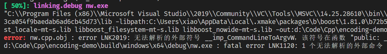 LNK2019:无法解析的外部符号 __imp_CommandLineToArgvW