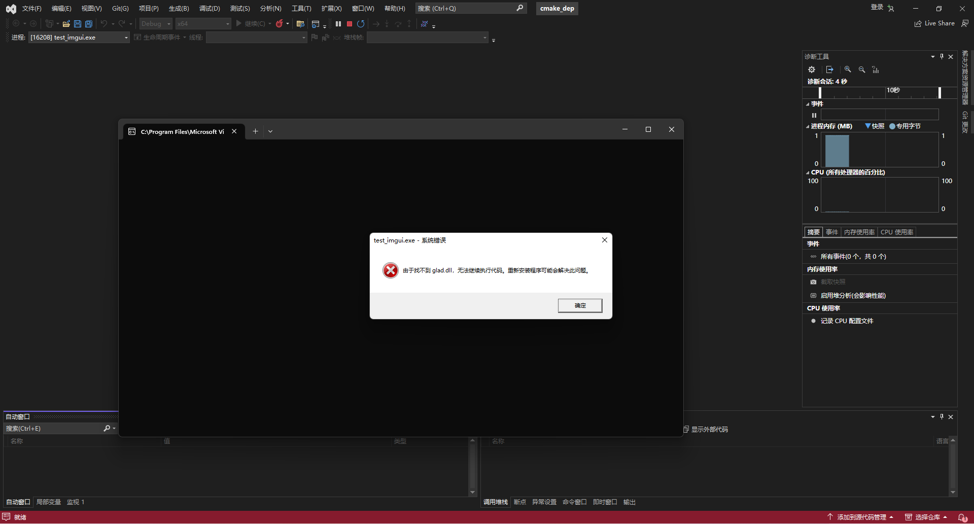 (图片太大可能看不清字,写的是:由于找不到 glad.dll,无法继续执行代码,重新安装程序可能会解决此问题。)